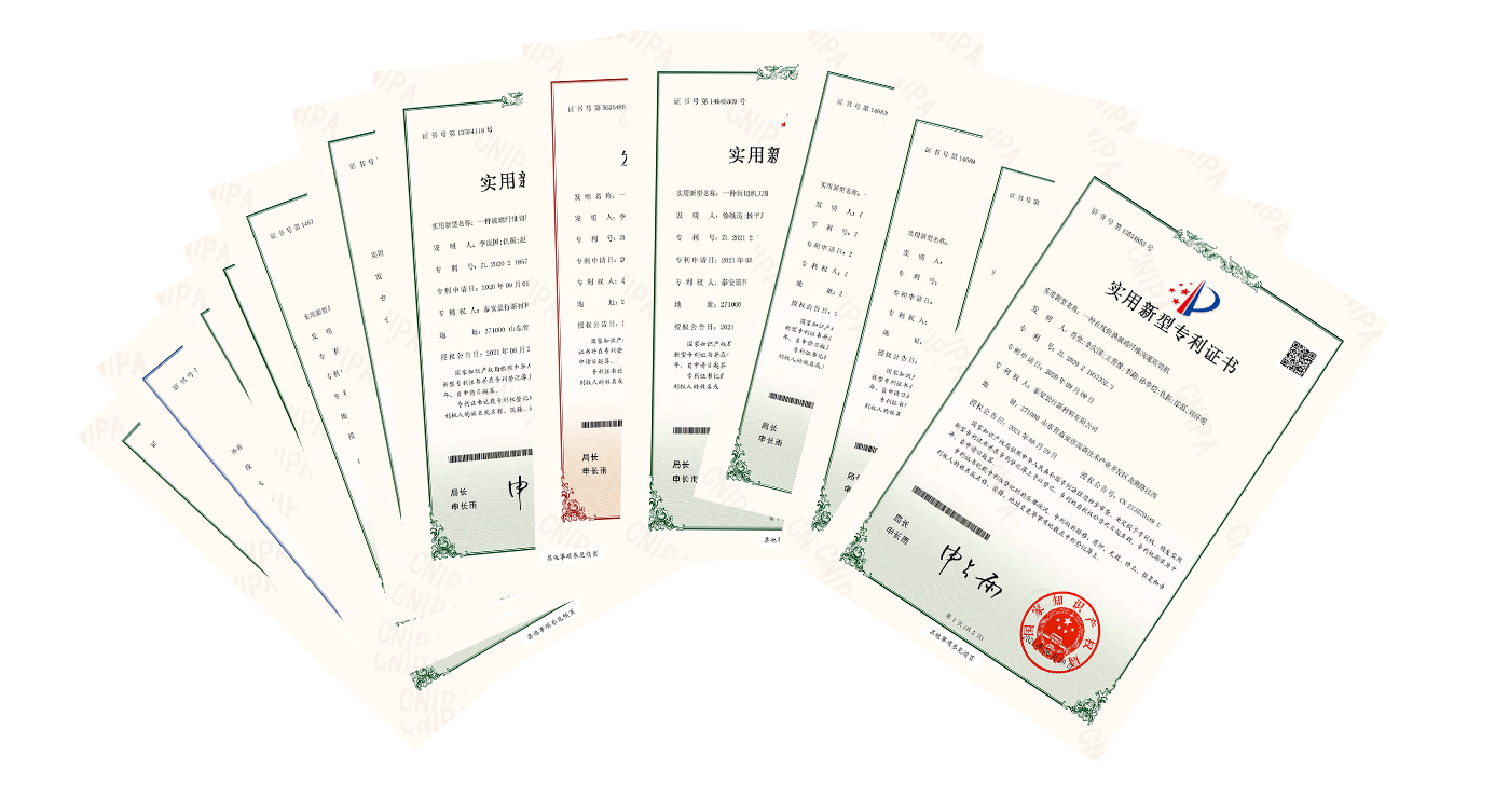 The company has obtained 10 invention patents, 20 utility model patents, 3 appearance patents, 2 software patents, and 8 patents under application. Passed ISO9001 quality management system certification.